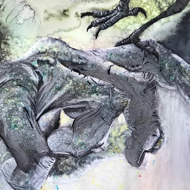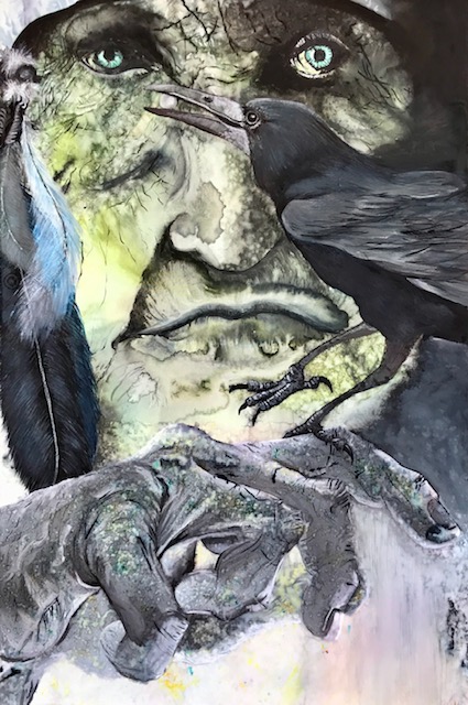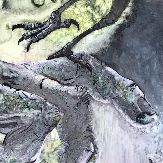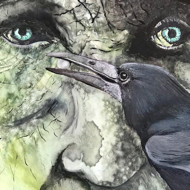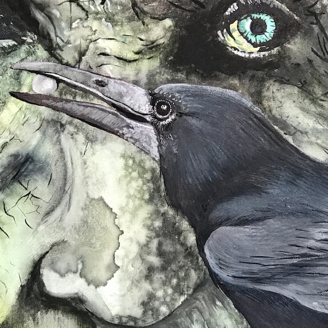 So, here it is.  This painting is called ‘Pearl’.  You’ll find the pearl in question held in the rook’s beak.  The pearl is a symbol of wonder and beauty in overcoming adversities.  Have you noticed the way adversities bring riches that we would otherwise not have?  The way a pearl is created in response to a little piece of grit that causes discomfort to the mollusc.  So it is with us, when we see adversity as an opportunity bringing potential treasure.